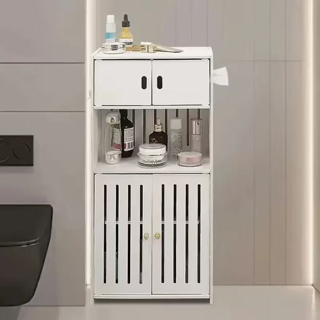 Вологостійка шафа для ванної кімнати — практичне та стильне рішення для організації простору. Завдяки 4 окремим зонам зберігання ви зручно розмістите рушники, косметику, побутову хімію та аксесуари.