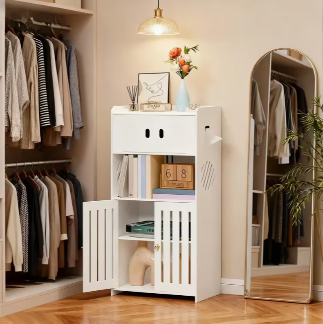 Компактні габарити дозволяють встановити шафу навіть у невеликій ванній, а закрита конструкція захищає речі від вологи та пилу. Лаконічний білий дизайн гармонійно вписується в сучасні інтер’єри та створює відчуття чистоти й порядку.